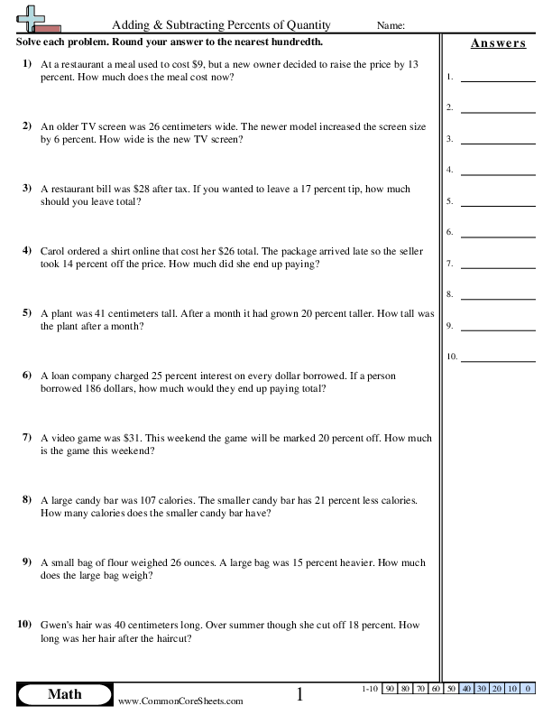Adding & Subtracting Percents of Quantity Worksheet Download