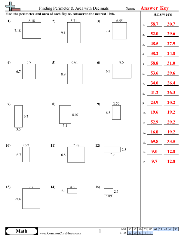 Understanding of Core ConceptsAfter completing the worksheet, students should have a firm grasp of calculating perimeters and areas with decimals. They will be able to apply this knowledge in different scenarios where understanding of measurements is necessary. This foundational math concept is not only critical in academia but also in real-world applications.Enhancement of Calculation SkillsWorking on the worksheet will enhance students' ability to perform operations on decimal numbers. This includes addition, multiplication, and applying these in finding area and perimeter. The process enhances calculation skills, which are vital in solving real-world problems.Accuracy and PrecisionThrough systematic practice, students will have significantly improved their capacity for accuracy and precision. Calculating perimeter and area with decimals requires careful attention to detail. Accuracy in these calculations is critical, especially when using these skills in real-world applications.Improvement of Problem-Solving SkillsStudents will develop their problem-solving skills as they navigate through each problem. By understanding the best strategy to calculate the area and perimeter successfully, they'll be better equipped to handle complex problems in the future.Conquering Complex ChallengesHaving mastered the art of finding perimeters and areas with decimals, children will be ready for more challenging mathematical problems. This includes advanced geometric calculations and even incorporating these skills into science and engineering projects.Confidence in MathBy completing the worksheet, children can gain the confidence to tackle decimal-related problems. This confidence can extend to other areas of maths and even other academic subjects. A sense of achievement after successfully completing these problems can significantly improve the student's overall attitude towards learning.Readiness for Advanced MathThis level of understanding and practicing decimal calculations prepares students for more advanced mathematical concepts. It sets the stage for subjects such as algebra and trigonometry, where operating with decimal numbers is a prerequisite.