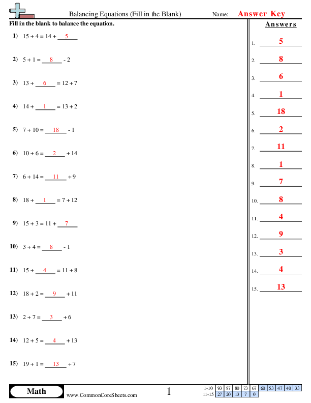 "This worksheet is designed to bolster children's mathematical prowess, delving into the intriguing concept of balancing equations. With 15 tailored problems encompassing addition and subtraction, children are motivated to fill in the blanks, nurturing their problem-solving skills. Apart from its flexibility in customization and feasibility for distance learning, the worksheet can also be effortlessly converted into engaging flash cards, aiding in an interactive and fun learning process."