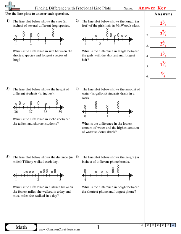 Fraction UnderstandingUpon completion of this worksheet, students will have developed a robust understanding of fractions. They will not just be acquainted with the basics of fractions, but experience a more profound comprehension, including the concepts of numerator and denominator. They will learn to identify fractions by carefully examining the values above and below the fraction bar. Additionally, students should have an improved knowledge of equivalence and simplification of fractions where they recognize that different fractions can represent the same value.Line Plots CreationStudents will acquire the skill of creating line plots. Line plots offer a visual representation of data using fractions and provide comprehensive information about data distribution. Students will develop competency in interpreting data from line plots, including the identification of clusters, peaks, gaps, and outliers. They will also improve in their analytical skills as line plots inspire them to ask deeper, more considered questions about the given data.Analytical SkillsCompleting this worksheet will aid students in honing their analytical abilities. The necessity to identify relevant information and the correlation between varied data points on the line plots, will cultivate their problem-solving skills. They will move a step farther from being simple calculators to becoming analytical thinkers, articulating more complex comparisons and pulling useful information from data sets.Real-world ApplicationsBy working through the problems in the worksheet, students will gain an increased understanding of how math, especially fractions and line plots, applies to real-world situations. This application-based understanding can make math more engaging for learners. It emphasizes the relevance of the subject, fostering continual interest and promoting the application of their mathematical skills in real-life scenarios.Increased ConfidenceAfter the successful completion of the worksheet, students will experience an increase in their confidence in handling fractions and line plots. This growth in confidence is not merely about their increased ability to solve such math problems, but also their fortified belief in their math capabilities. Overcoming challenges encountered within the worksheet will further foster resilience when faced with more complex mathematical problems in the future.