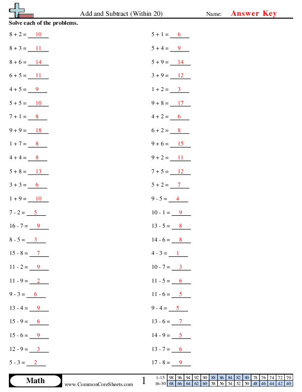 Add and Subtract (Within 20)