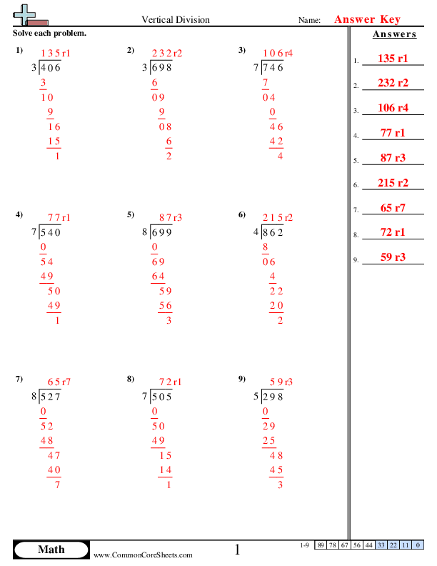 "This worksheet is designed to hone children's vertical division skills. Utilizing a supportive helper grid, it provides nine unique math problems that help students break down division equations step by step. Notably, this worksheet boasts a versatile format that can easily be customized according to individual needs, converted into flash cards for ease of learning, or used effectively in distance learning environments. A practical tool to reinforce mathematical concepts in an engaging manner."